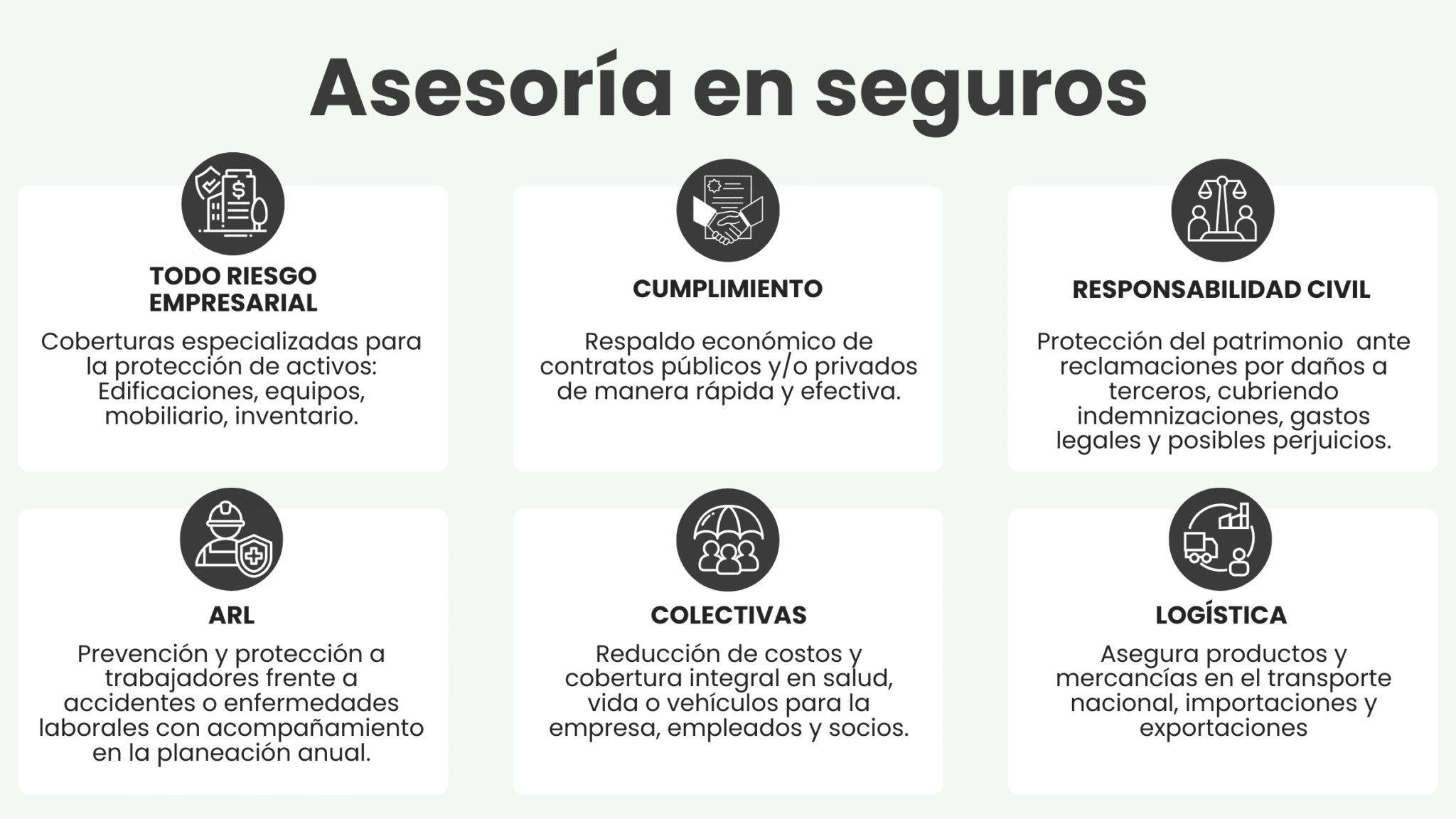 Contamos con grandes alianzas comerciales con las mejores aseguradoras del país. Estas alianzas nos permiten ofrecer una amplia gama de opciones y beneficios exclusivos. Analizamos cada perfil de manera detallada para identificar la póliza más conveniente según las necesidades, prioridades y presupuesto de cada cliente. Nuestro compromiso es brindar soluciones seguras, personalizadas y accesibles.